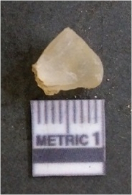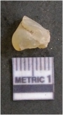 | Description / विवरण | It is chalcedony flake, translucent in appearance. The piece shows sharp pointed ends and flake scars on the surface as a result of flaking. The piece shows a bulb of percussion. |