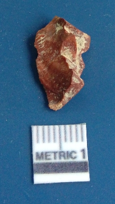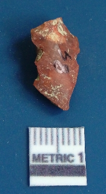 | Description / विवरण | The chert piece is dark in color, with a prominent bulb of percussion and sharp flaked edges. The piece is a part of lithic debitage or raw material for lithic knapping. The piece shows clear ripple marks and bulb of percussion. |