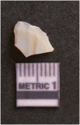 | Description / विवरण | The quartz flake has sharp flaked edges and pointed ends as a result of flaking. The piece is semi-transparent in nature with irregular fracture pattern. The piece is roughly triangular in shape and has a prominent bulb of percussion. |