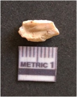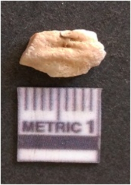 | Description / विवरण | The quartz flake has sharp flaked edges and pointed ends as a result of flaking. The piece is semi-transparent in nature with irregular fracture pattern. The piece is roughly triangular in shape and has a prominent bulb of percussion. |
