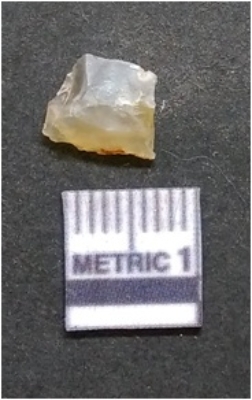 | Description / विवरण | It is chalcedony flake, translucent in appearance. The piece shows sharp pointed ends and flake scars on the surface as a result of flaking. The piece shows a bulb of percussion. |