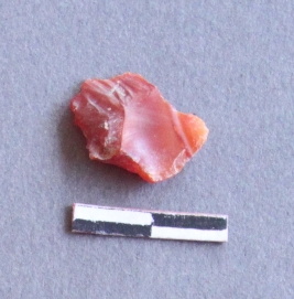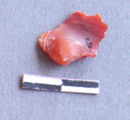 | Description / विवरण | It is carnelian piece with a prominent bulb and sharp edges. |