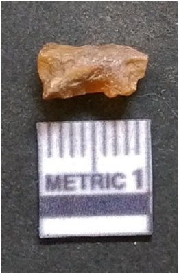 | Description / विवरण | It is chalcedony flake, translucent in appearance. The piece shows sharp pointed ends and flake scars on the surface as a result of flaking. The piece shows a bulb of percussion. |