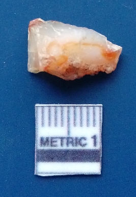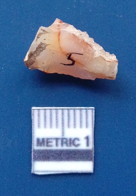 | Description / विवरण | The agate piece is translucent in appurtenance, with angular flaked edges and a bulb of percussion. The piece shows flake scars on the surface. |