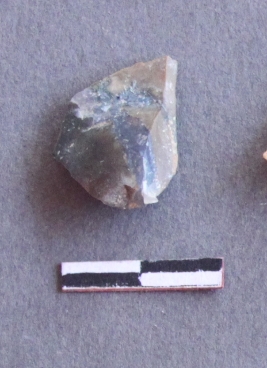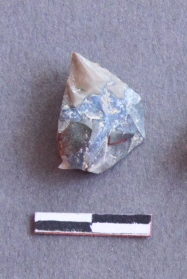 | Description / विवरण | Jasper piece have pointed ends and mid ridges as a result of flaking |