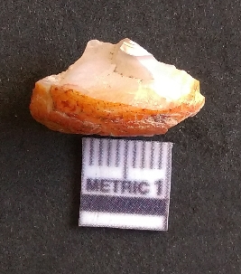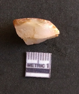 | Description / विवरण | The quartz fragment shows prominent flaks scars and sharp flaked ends as a result of flaking. The piece is translucent white and shows cryptocrystalline matrix. |