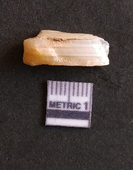 | Description / विवरण | The banded agate piece is crystalline in nature, with a smooth fracture pattern and visible bands on the flakes sides. |