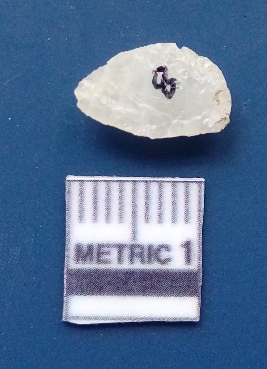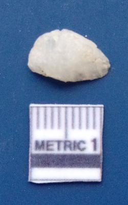| Description / विवरण | The quartz flake has sharp flaked edges and pointed ends as a result of flaking. The piece is semi-transparent in nature with irregular fracture pattern. The piece is roughly triangular in shape and has a prominent bulb of percussion. |