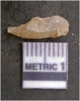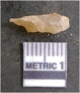 | Description / विवरण | It is chalcedony flake, translucent in appearance. The piece shows sharp pointed ends and flake scars on the surface as a result of flaking. The piece shows a bulb of percussion. |