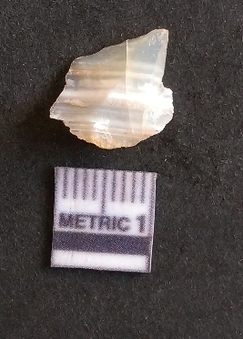 | Description / विवरण | The banded agate piece is crystalline in nature, with a smooth fracture pattern and visible bands on the flakes sides. |