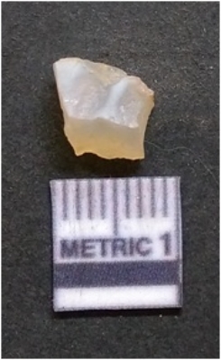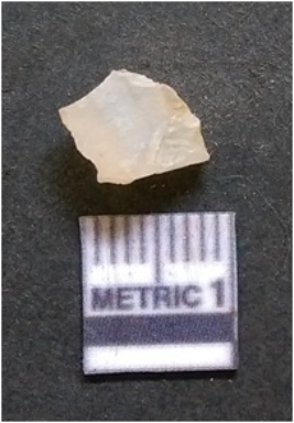 | Description / विवरण | It is chalcedony flake, translucent in appearance. The piece shows sharp pointed ends and flake scars on the surface as a result of flaking. The piece shows a bulb of percussion. |