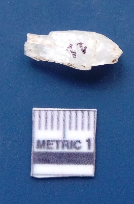 | Description / विवरण | The quartz flake has sharp flaked edges and pointed ends as a result of flaking. The piece is semi-transparent in nature with irregular fracture pattern. The piece is roughly triangular in shape and has a prominent bulb of percussion. |