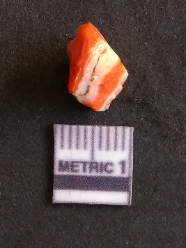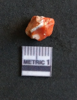| Description / विवरण | The banded agate piece is crystalline in nature, with a smooth fracture pattern and visible bands on the flakes sides. |