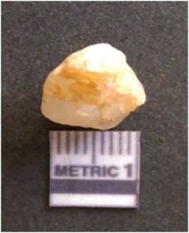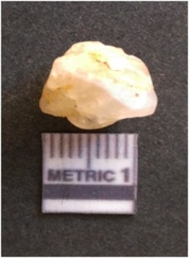 | Description / विवरण | The quartz flake has sharp flaked edges and pointed ends as a result of flaking. The piece is semi-transparent in nature with irregular fracture pattern. The piece is roughly triangular in shape and has a prominent bulb of percussion. |