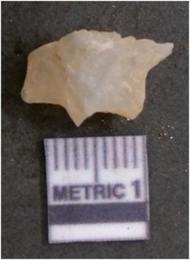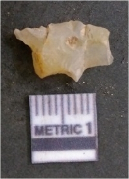 | Description / विवरण | It is chalcedony flake, translucent in appearance. The piece shows sharp pointed ends and flake scars on the surface as a result of flaking. The piece shows a bulb of percussion. |