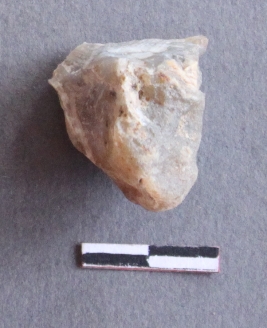 | Description / विवरण | It is a quartz piece with flake scars and sharp edges as a result of flaking |