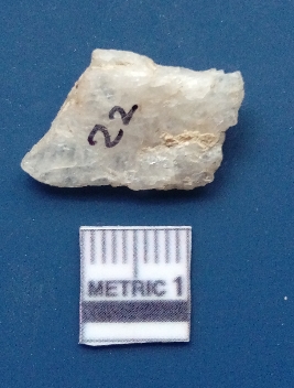 | Description / विवरण | The quartz flake has sharp flaked edges and pointed ends as a result of flaking. The piece is semi-transparent in nature with irregular fracture pattern. The piece is roughly triangular in shape and has a prominent bulb of percussion. |