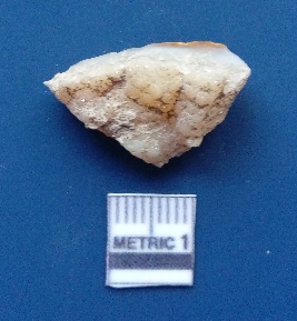 | Description / विवरण | The quartz flake has sharp flaked edges and pointed ends as a result of flaking. The piece is semi-transparent in nature with irregular fracture pattern. The piece is roughly triangular in shape and has a prominent bulb of percussion. |