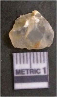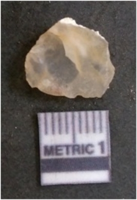 | Description / विवरण | It is chalcedony flake, translucent in appearance. The piece shows sharp pointed ends and flake scars on the surface as a result of flaking. The piece shows a bulb of percussion. |