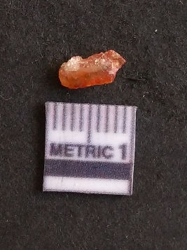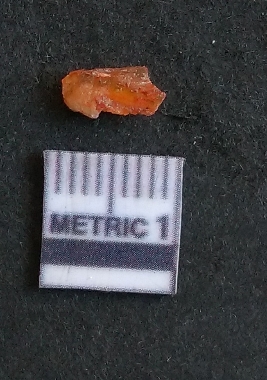 | Description / विवरण | The carnelian flake is reddish in color, with sharp flakes edges and a small bulb of percussion owing to knapping activity. |