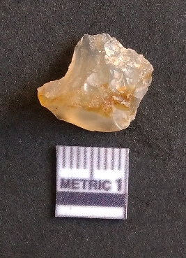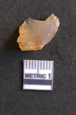 | Description / विवरण | The chalcedony flake is pale yellow in color. Translucent in appurtenance. The piece is shows sharp pointed ends and flake scars on the surface. As a result of flaking. |
