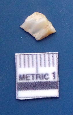 | Description / विवरण | It is chalcedony flake, translucent in appearance. The piece shows sharp pointed ends and flake scars on the surface as a result of flaking. The piece shows a bulb of percussion. |