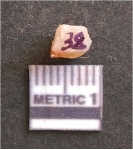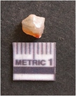 | Description / विवरण | It is chalcedony flake, translucent in appearance. The piece shows sharp pointed ends and flake scars on the surface as a result of flaking. The piece shows a bulb of percussion. |