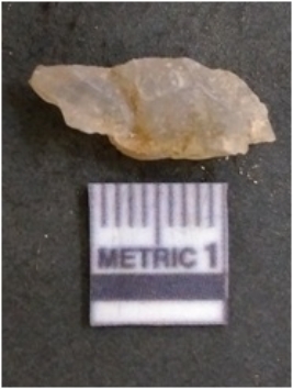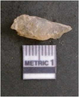 | Description / विवरण | It is chalcedony flake, translucent in appearance. The piece shows sharp pointed ends and flake scars on the surface as a result of flaking. The piece shows a bulb of percussion. |