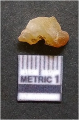 | Description / विवरण | It is chalcedony flake, translucent in appearance. The piece shows sharp pointed ends and flake scars on the surface as a result of flaking. The piece shows a bulb of percussion. |