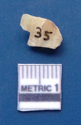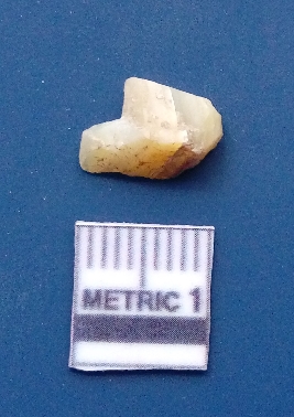 | Description / विवरण | It is chalcedony flake, translucent in appearance. The piece shows sharp pointed ends and flake scars on the surface as a result of flaking. The piece shows a bulb of percussion. |