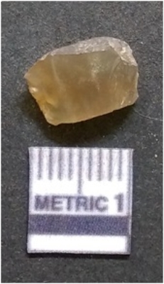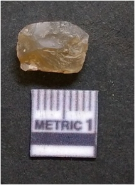 | Description / विवरण | It is chalcedony flake, translucent in appearance. The piece shows sharp pointed ends and flake scars on the surface as a result of flaking. The piece shows a bulb of percussion. |