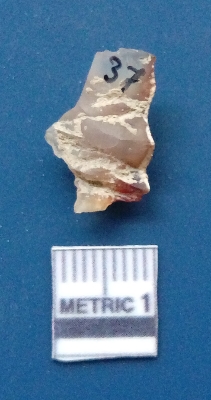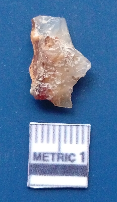 | Description / विवरण | It is chalcedony flake, translucent in appearance. The piece shows sharp pointed ends and flake scars on the surface as a result of flaking. The piece shows a bulb of percussion. |