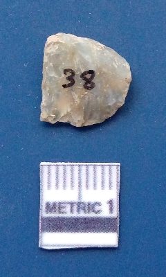 | Description / विवरण | It is chalcedony flake, translucent in appearance. The piece shows sharp pointed ends and flake scars on the surface as a result of flaking. The piece shows a bulb of percussion. |
