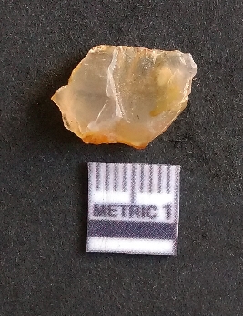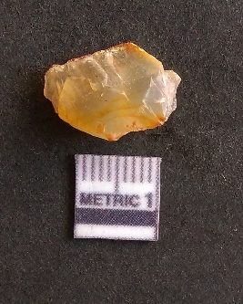 | Description / विवरण | The chalcedony flake is pale yellow in color. Translucent in appurtenance. The piece is shows sharp pointed ends and flake scars on the surface. As a result of flaking. |