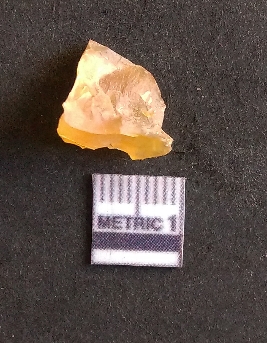 | Description / विवरण | The chalcedony flake is pale yellow in color. Translucent in appurtenance. The piece is shows sharp pointed ends and flake scars on the surface. As a result of flaking. |