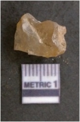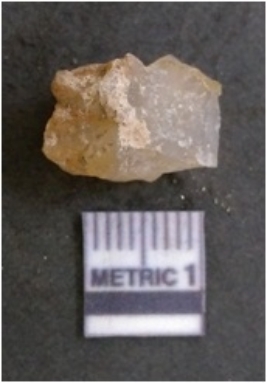 | Description / विवरण | It is chalcedony flake, translucent in appearance. The piece shows sharp pointed ends and flake scars on the surface as a result of flaking. The piece shows a bulb of percussion. |
