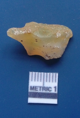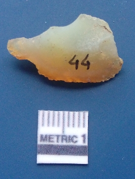 | Description / विवरण | It is chalcedony flake, translucent in appearance. The piece shows sharp pointed ends and flake scars on the surface as a result of flaking. The piece shows a bulb of percussion. |