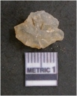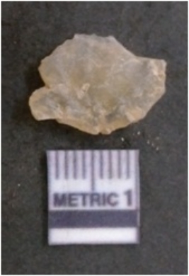 | Description / विवरण | It is chalcedony flake, translucent in appearance. The piece shows sharp pointed ends and flake scars on the surface as a result of flaking. The piece shows a bulb of percussion. |