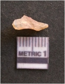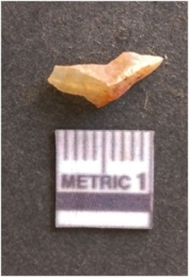 | Description / विवरण | It is chalcedony flake, translucent in appearance. The piece shows sharp pointed ends and flake scars on the surface as a result of flaking. The piece shows a bulb of percussion. |