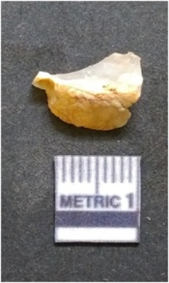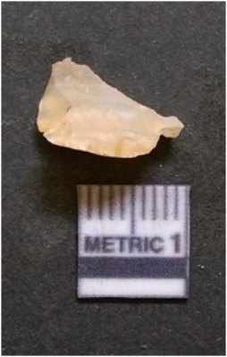 | Description / विवरण | It is chalcedony flake, translucent in appearance. The piece shows sharp pointed ends and flake scars on the surface as a result of flaking. The piece shows a bulb of percussion. |