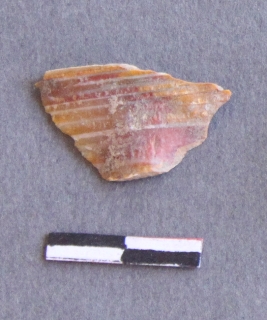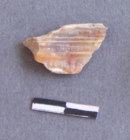| Description / विवरण | It is a banded agate fragment, with bulb of percussion on ventral side of the fragment. Flake ridges on the surface. It is a banded agate and translucent in appearance. |
