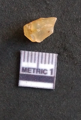 | Description / विवरण | The chalcedony flake is pale yellow in color. Translucent in appurtenance. The piece is shows sharp pointed ends and flake scars on the surface. As a result of flaking. |