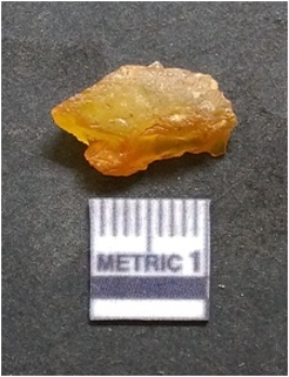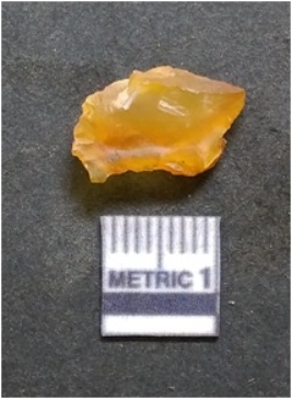 | Description / विवरण | It is chalcedony flake, translucent in appearance. The piece shows sharp pointed ends and flake scars on the surface as a result of flaking. The piece shows a bulb of percussion. |