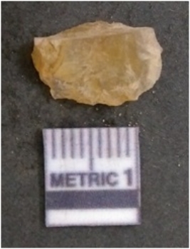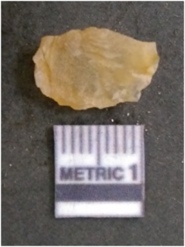 | Description / विवरण | It is chalcedony flake, translucent in appearance. The piece shows sharp pointed ends and flake scars on the surface as a result of flaking. The piece shows a bulb of percussion. |