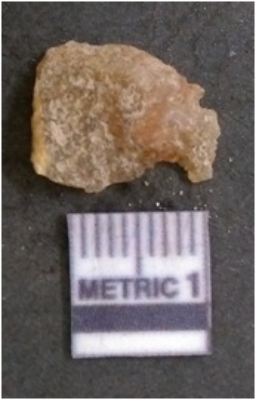 | Description / विवरण | It is chalcedony flake, translucent in appearance. The piece shows sharp pointed ends and flake scars on the surface as a result of flaking. The piece shows a bulb of percussion. |