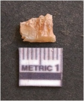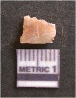 | Description / विवरण | It is chalcedony flake, translucent in appearance. The piece shows sharp pointed ends and flake scars on the surface as a result of flaking. The piece shows a bulb of percussion. |