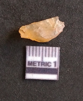 | Description / विवरण | The chalcedony flake is pale yellow in color. Translucent in appurtenance. The piece is shows sharp pointed ends and flake scars on the surface. As a result of flaking. |