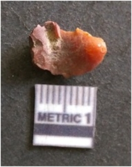 | Description / विवरण | It is chalcedony flake, translucent in appearance. The piece shows sharp pointed ends and flake scars on the surface as a result of flaking. The piece shows a bulb of percussion. |