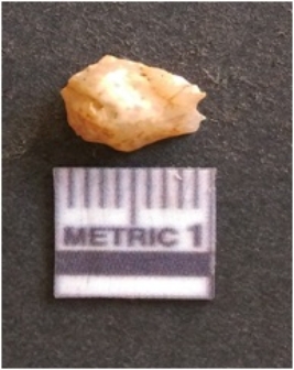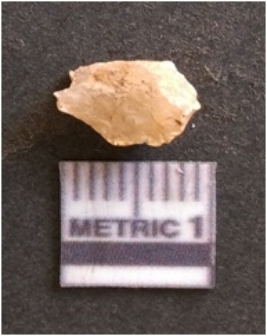 | Description / विवरण | It is chalcedony flake, translucent in appearance. The piece shows sharp pointed ends and flake scars on the surface as a result of flaking. The piece shows a bulb of percussion. |