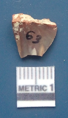 | Description / विवरण | The chert piece is dark in color, with a prominent bulb of percussion and sharp flaked edges. The piece is a part of lithic debitage or raw material for lithic knapping. The piece shows clear ripple marks and bulb of percussion. |